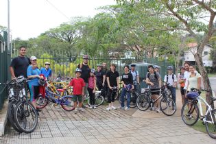 Equipe que pedalou reunida em frente ao Parque Municipal do Cordeiro