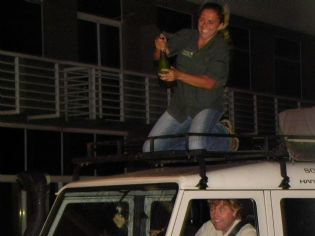 Grace Downey e Robert Ager comemoram com amigos, familiares e empresas patrocinadoras, o sucesso da expedição "Brasil por Terra"